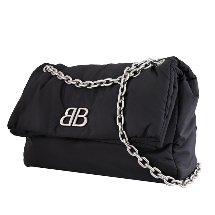 《BALENCIAGA》,深受不少國內外名人青睞的品牌,其魅力在台灣持續燃燒,是許多人踏入名牌世界的第一選擇,熱銷經典款再創新設計,獨特包型設計更顯高貴及優雅,採用尼龍材質搭配金屬BB LOGO,內1貼袋+前1貼袋可收納,可放手機、長夾、摺疊傘等隨身物品,是近年最夯的包款,顯出低調奢華的質感,都會時尚感,搶眼又好搭風格。