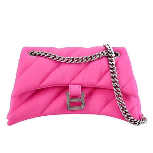 BALENCIAGA 巴黎世家 782088 CRUSH 絎縫布面翻蓋沙漏包/鍊包.桃紅