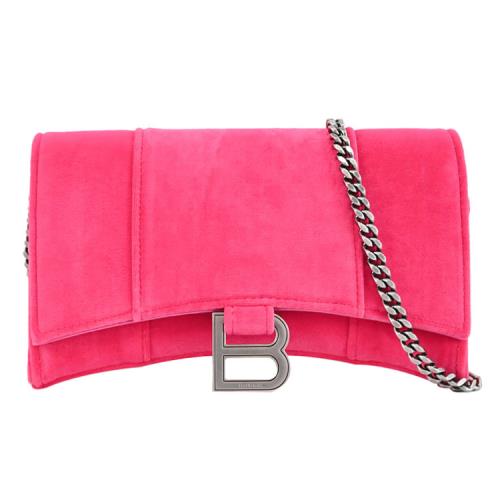 BALENCIAGA 巴黎世家 656050 Hourglass 天鵝絨WOC斜背鍊包.亮粉