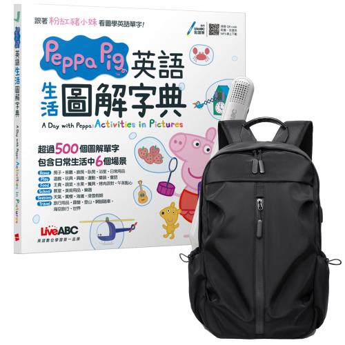 Peppa Pig 英語生活圖解字典 + LiveABC智慧藍牙點讀筆16G + 多功能經典後背包(黑)