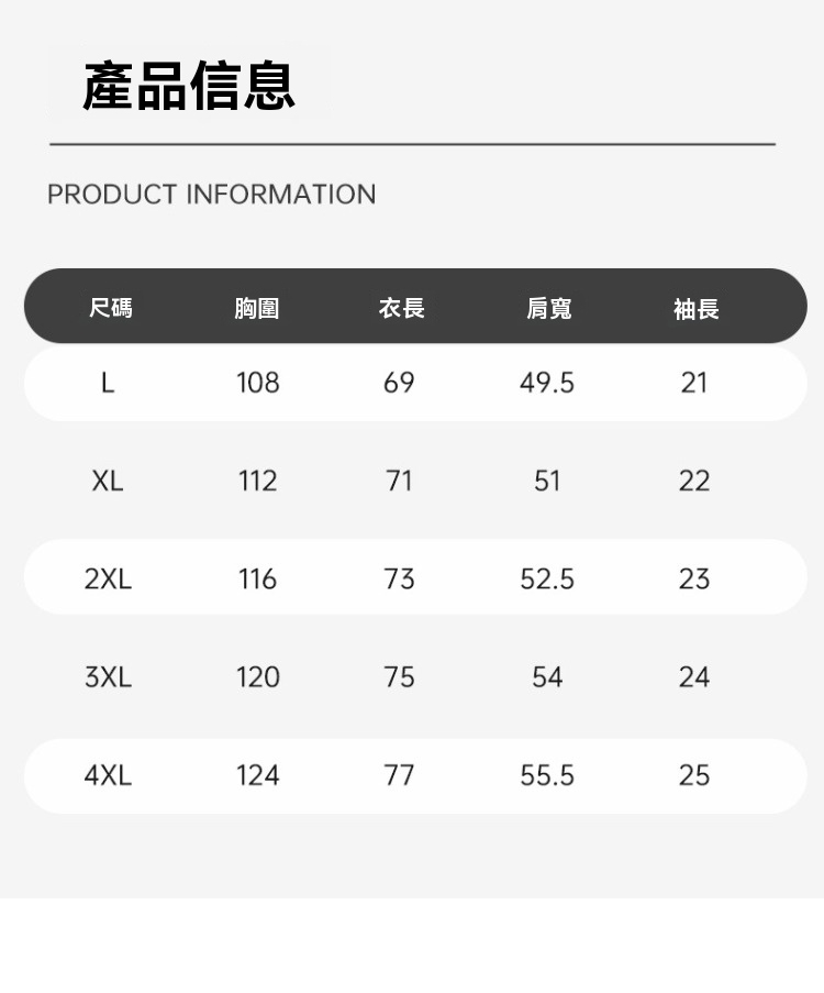 ●尺碼:L/XL/2XL/3XL/4XL