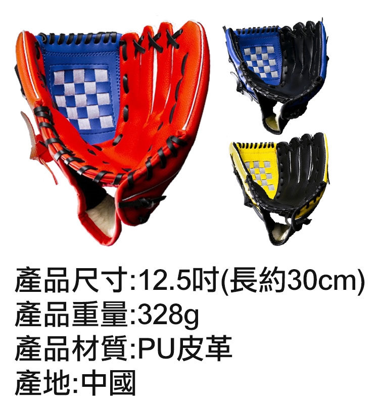 12.5吋棒球手套:掌長17.0–19.0公分(16歲以上)