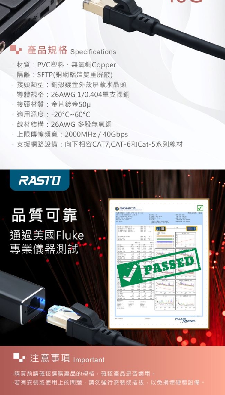 ◆ 出廠前皆通過美國 Fluke - Channel 測試