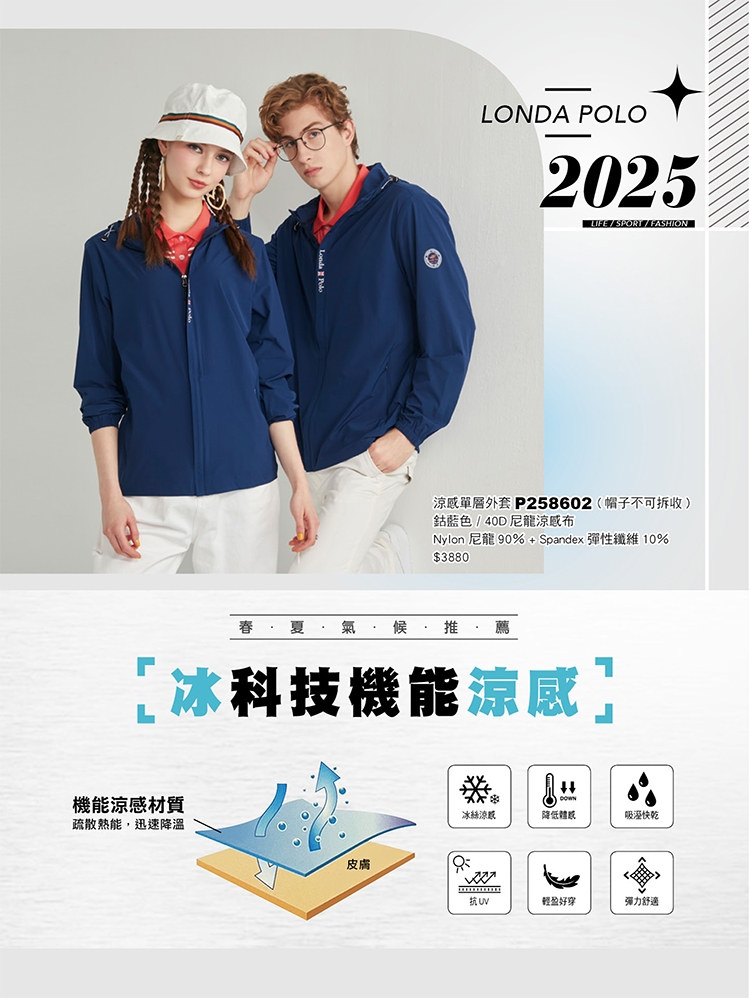 【Londa Polo】涼感單層外套-帽子不可拆收(P258602)鈷藍色
