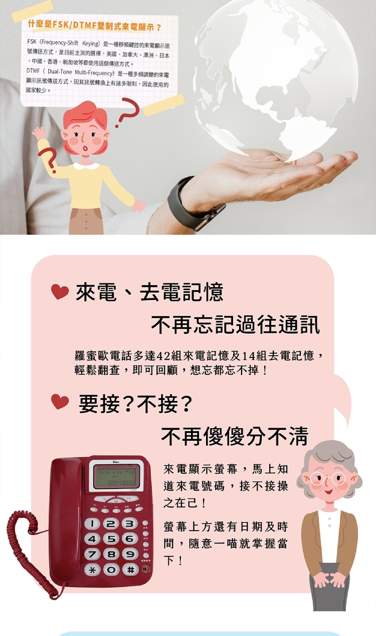 ★ DTMF/FSK雙制式來電顯示