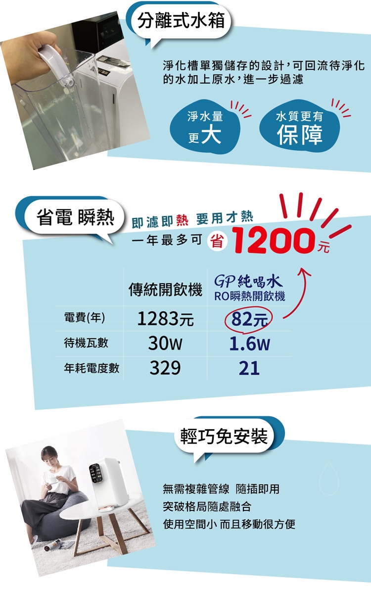 G-PLUS 拓勤 W01R+ GP純喝水-RO移動式瞬熱開飲機飲水機(+贈GPLUS原廠蒸氣掛燙機)