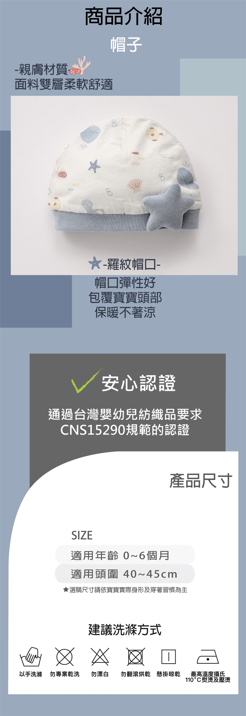 【尺 寸】0-6個月/頭圍(40~45cm)