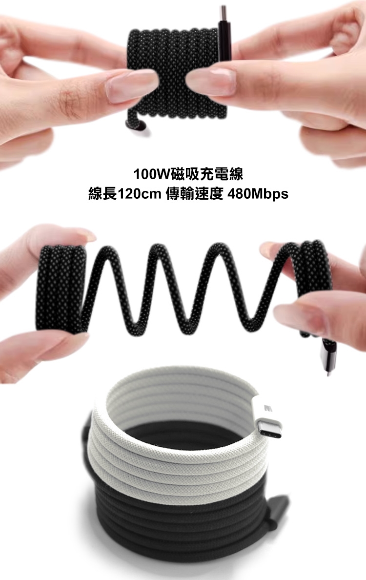 100W磁吸充電線 線長120cm傳輸速度 480Mbps