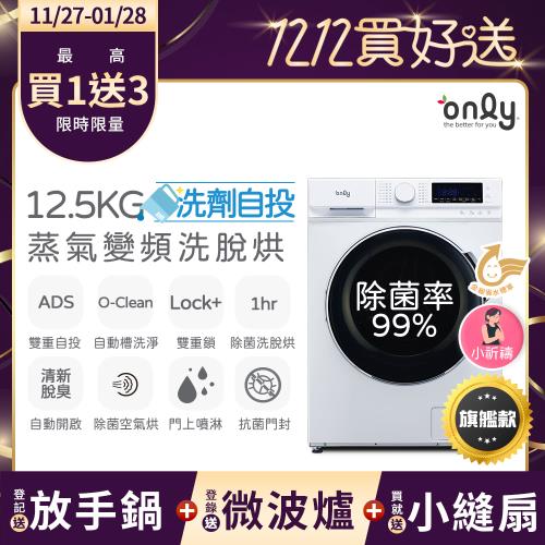 【最熱銷滾筒~搶先開賣】贈DC變頻小縫扇~ only小祈禱12.5KG洗劑自投洗脫烘洗衣機旗艦款OF13-M62UD白(省水12.5公斤變頻滾筒)