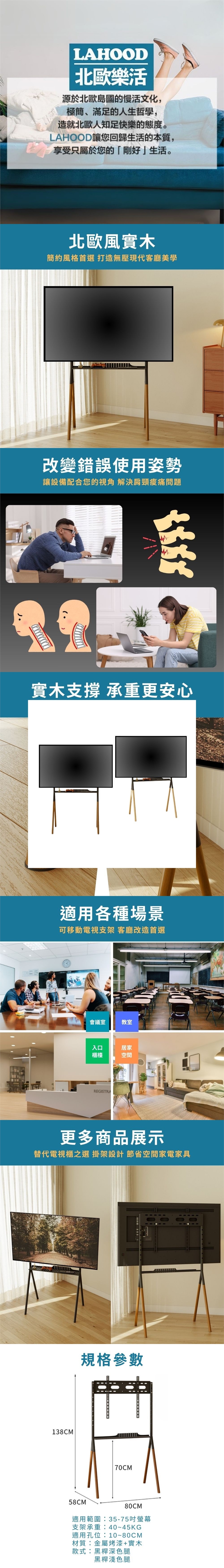 ‧品名:質感系可移動 實木電視支架 35-75吋