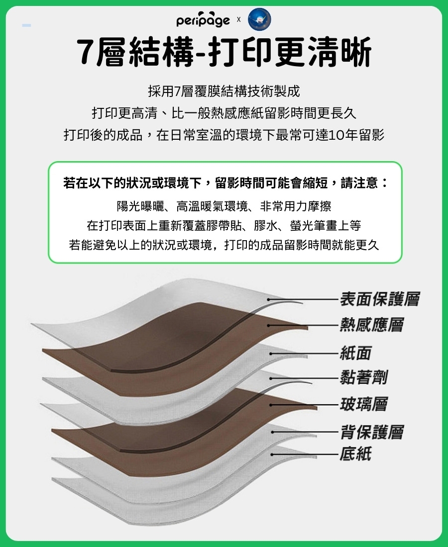 👍 7層結構擁有高清晰顯影、保證5~10年留影特點