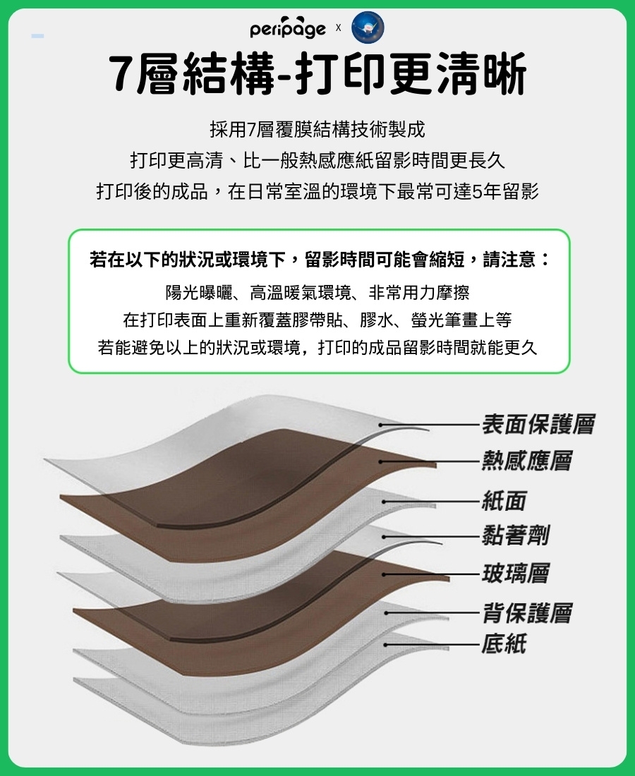 👍 7層結構擁有高清晰顯影、保證5~10年留影特點