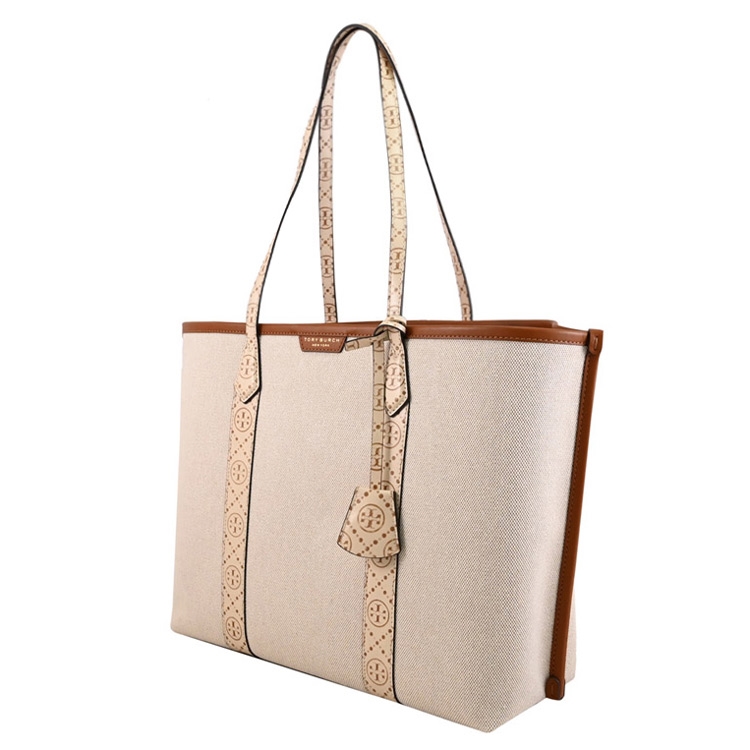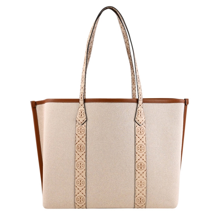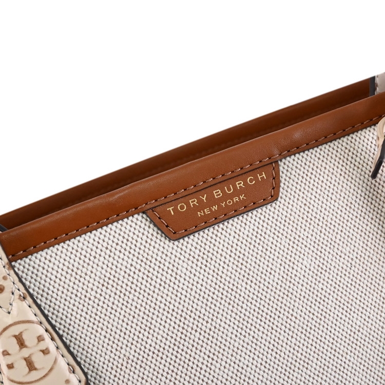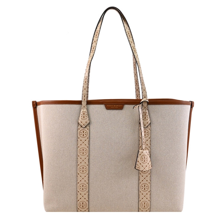 美國紐約時尚品牌 TORY BURCH(托里.伯奇) 來自於美國輕奢品牌,是近年來討論度極高的熱門精品品牌,鮮明大膽色彩表現,一眼看出這品牌LOGO設計;此款是專櫃新款肩背包,採用燙金LOGO與帆布拼接皮革,內有2層隔袋+中1拉鍊袋+3內袋,可裝A4文件、筆電或摺疊傘等隨身物品,都會簡約時尚的設計,落落大方的剪裁,無論上班或外出出遊逛街都合適,是輕便又實用的包款。
