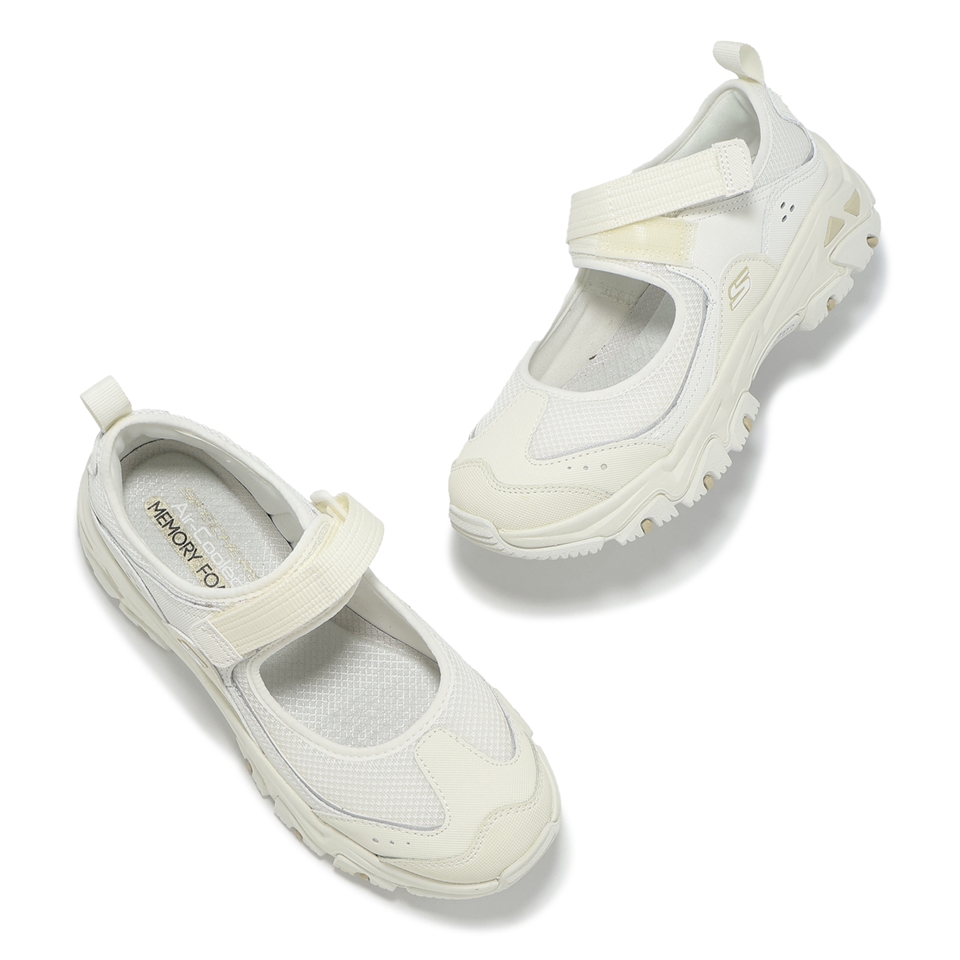 D'LITES HIKER 系列,瑪莉珍休閒鞋,異材質拼接鞋面,運用網布、皮革和皮面裁片,打造出全新的山系機能風外觀,是都市山系風格的理想選擇。