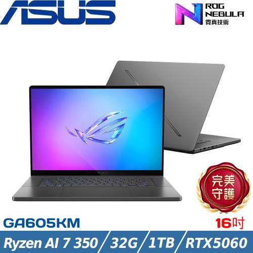 ASUS ROG G 16吋電競筆電 Ryzen AI 7 350/32G/1T/RTX5060/W11/GA605KM-0032E350H-NBLO