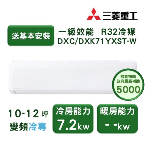 【家電速配 三菱重工MITSUBISHI】 晴空系列10-12坪 極致靜音噴射氣流變頻冷專冷氣(DXC71YXST-W/DXK71YXST-W)
