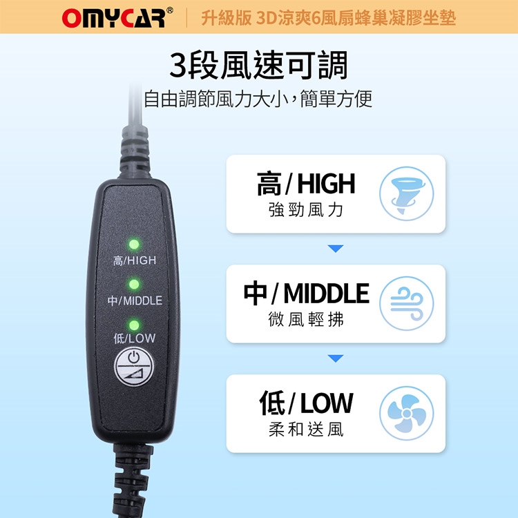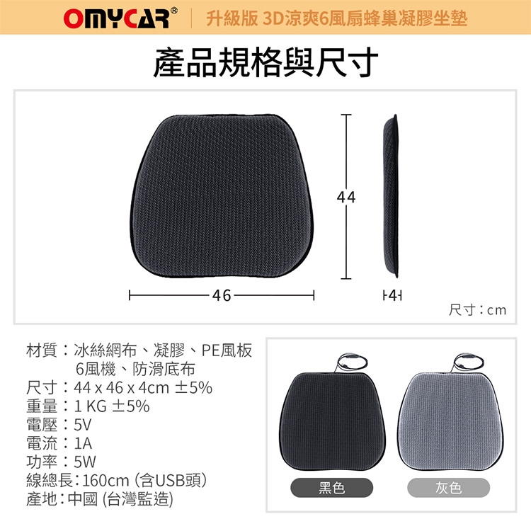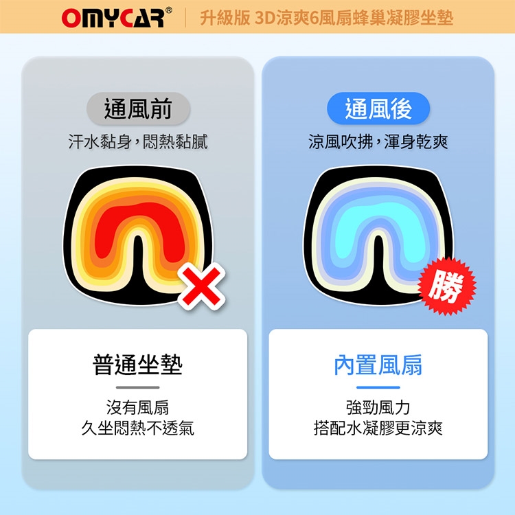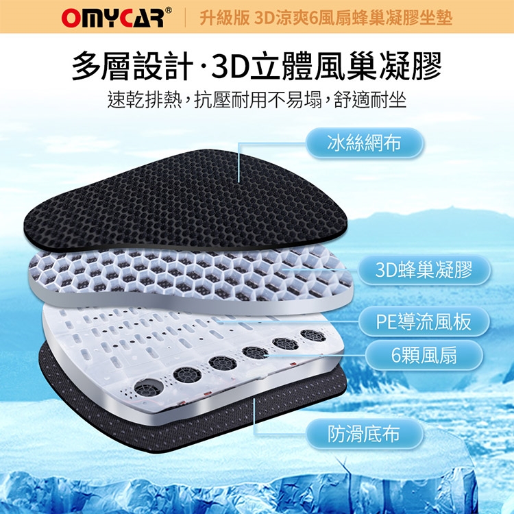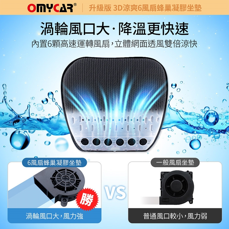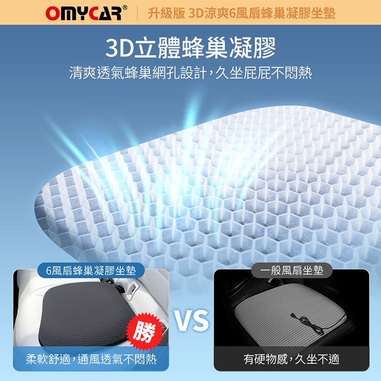 品名:【OMyCar】升級版 3D涼爽6風扇蜂巢凝膠坐墊