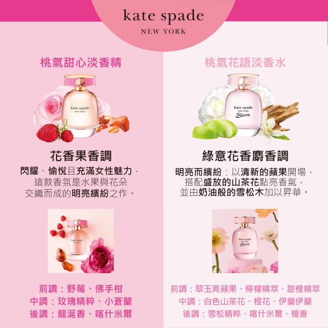 是一款全新的花果香調香水,粉紅色瓶身體現kate spade品牌相關的俏皮和情感聯繫。
