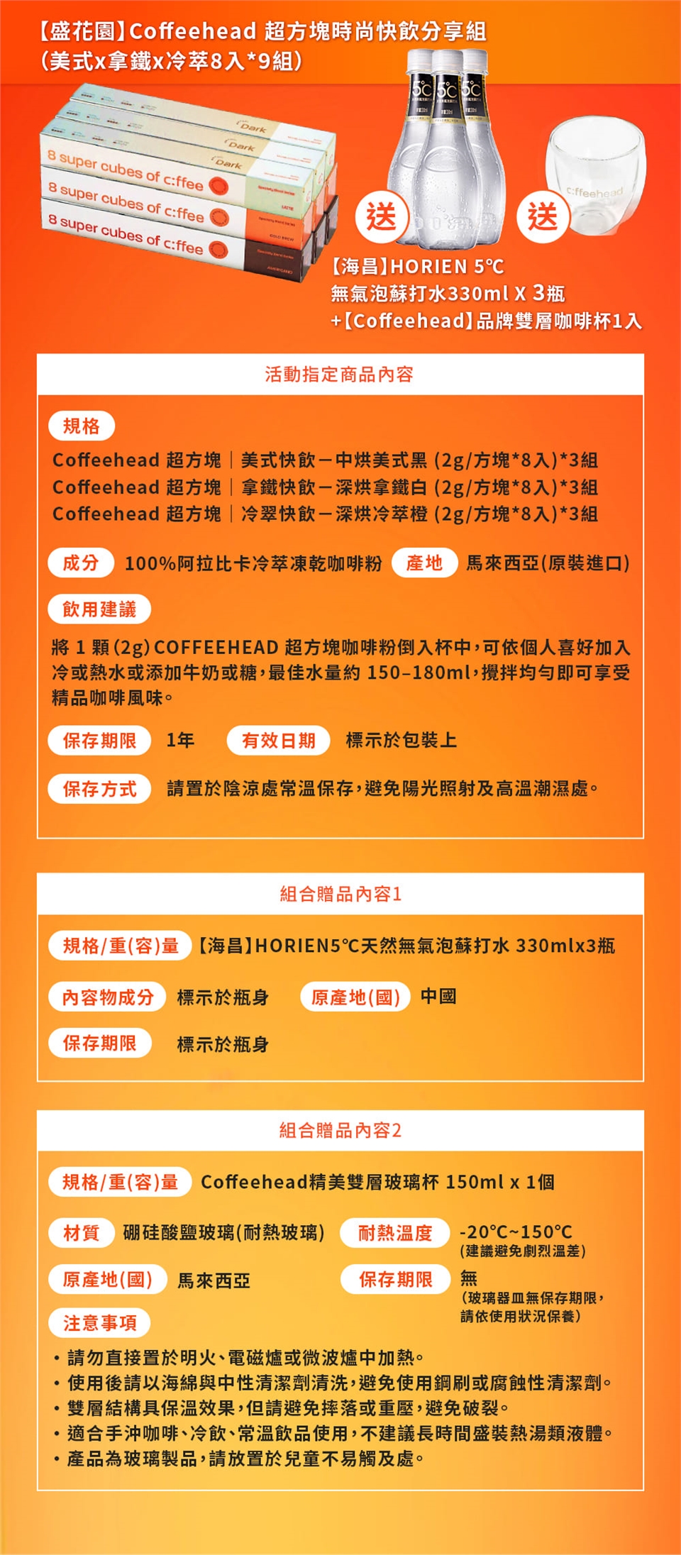 【盛花園】Coffeehead 超方塊咖啡 ×【海昌】HORIEN 5°C 天然無氣泡蘇打水
