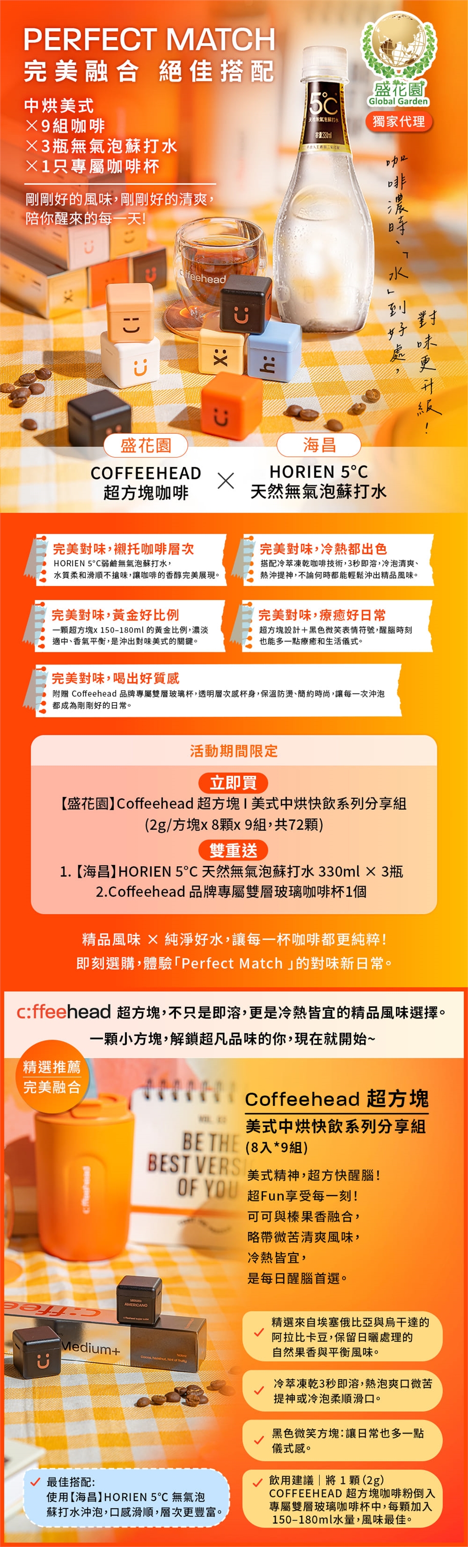 【盛花園】Coffeehead 超方塊咖啡 ×【海昌】HORIEN 5°C 天然無氣泡蘇打水