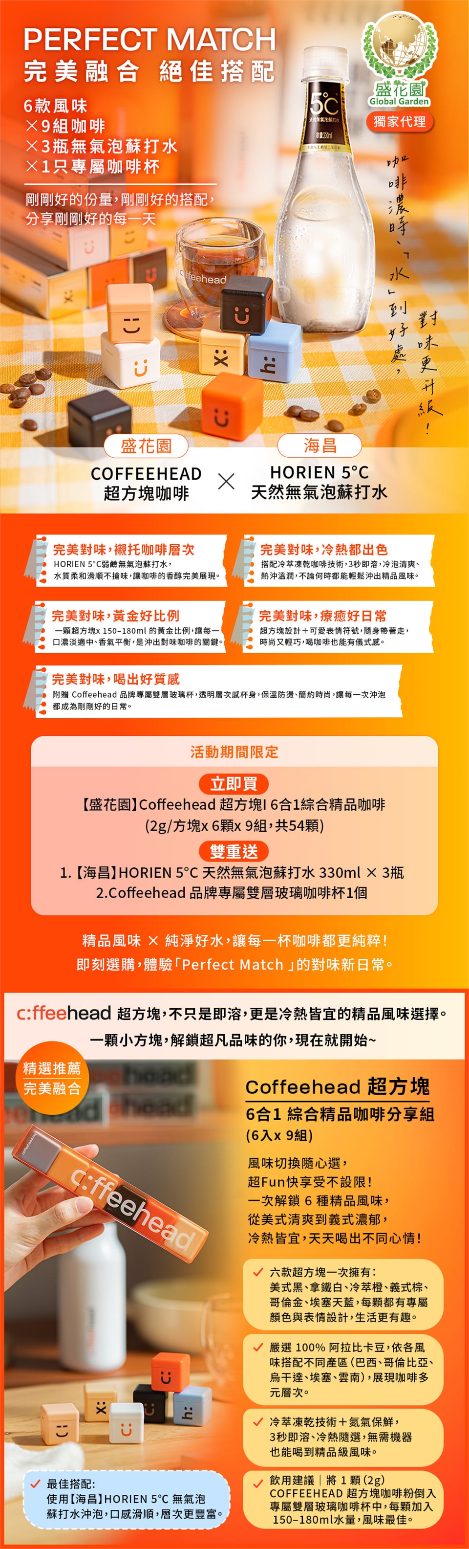 【盛花園】Coffeehead 超方塊咖啡 ×【海昌】HORIEN 5°C 天然無氣泡蘇打水