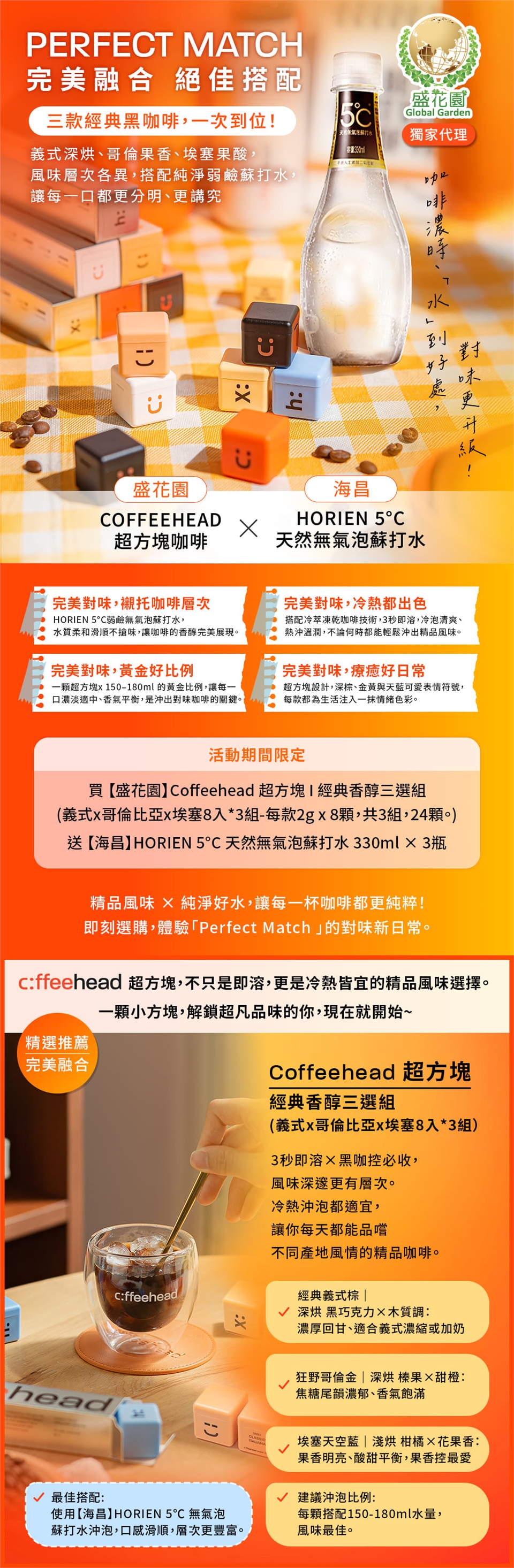 【盛花園】Coffeehead 超方塊咖啡 ×【海昌】HORIEN 5°C 天然無氣泡蘇打水