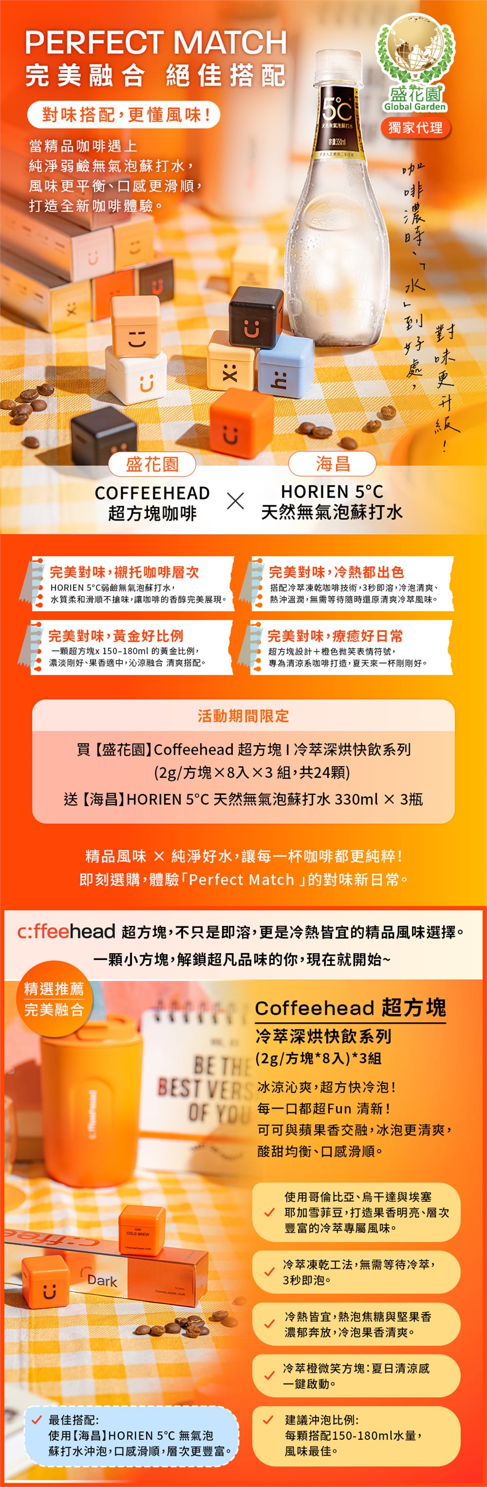 【盛花園】Coffeehead 超方塊咖啡 ×【海昌】HORIEN 5°C 天然無氣泡蘇打水