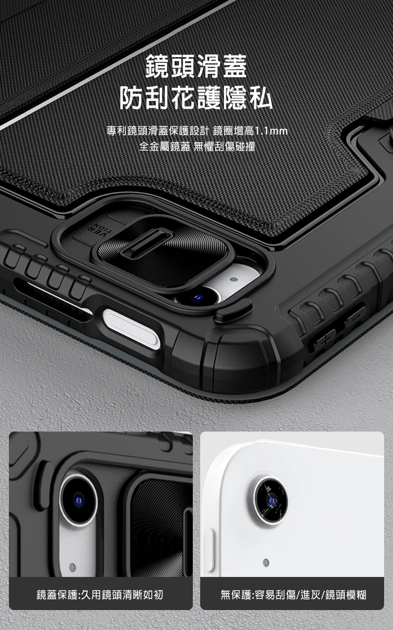 .強悍抗摔保護殼緊貼機身,搭配專利滑蓋鏡頭設計