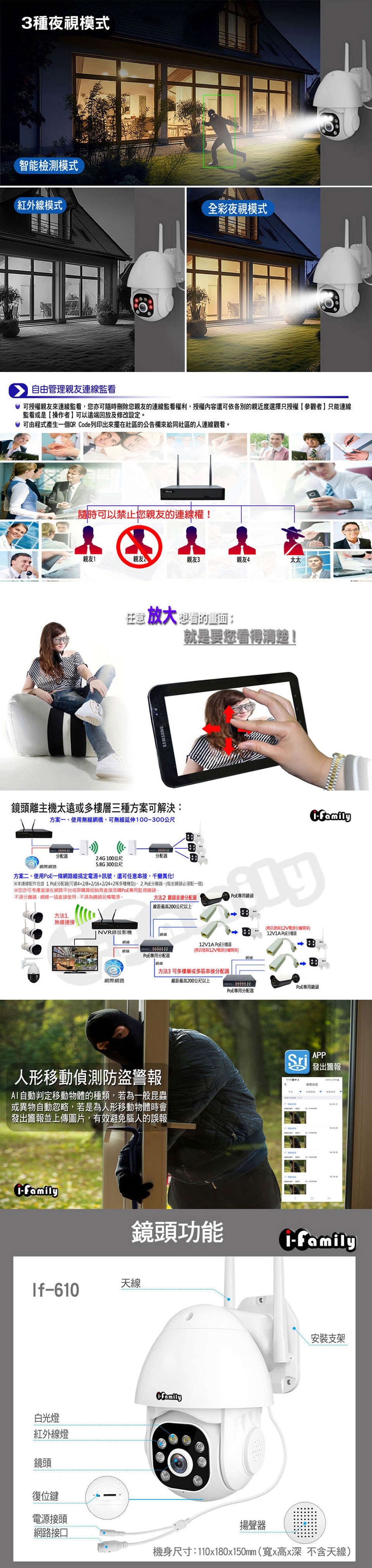 ※AI人形辨識,警報可區別〝人形移動〞或〝畫面移動〞避免惱人的誤報;