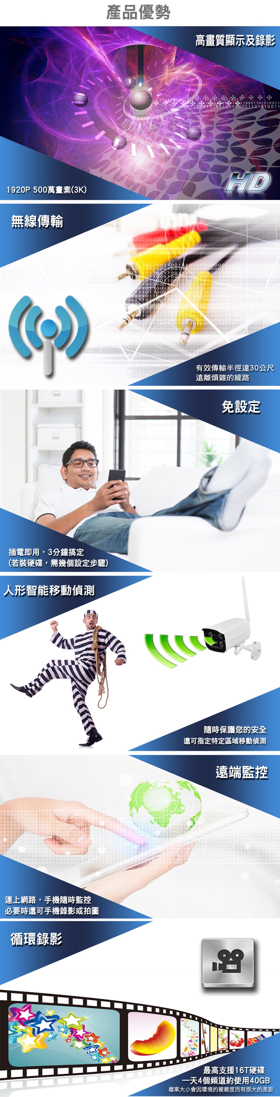 ※高清顯示,支援最高500萬畫素(3K)畫素監視鏡頭;