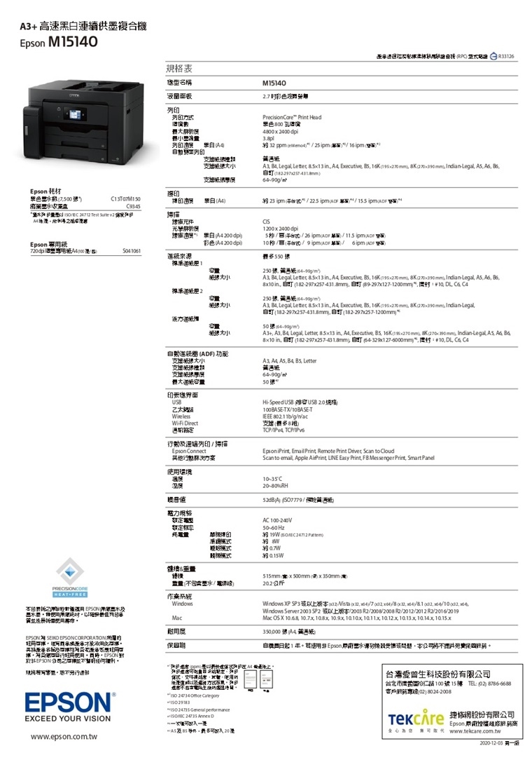 EPSON M15140 A3黑白高速連續供墨複合機