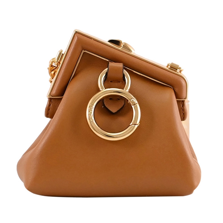 FENDI 品牌己延續歷史的精髓,F LOGO設計不止是顯現完美的奢華、沉穩、熟女專用的精品,除了保有傳統奢華形象,現在的FENDI 多了更多的變化的策略,深入觀察FENDI的世界,便能慢慢體會它的精品美學趣味;品牌FENDI Nano First Charm系列,磁吸口金,內可放零錢等小物品,鏈帶可任意調節斜背或頸掛,最佳的時尚小配件,美觀持久耐用的品味小配件。