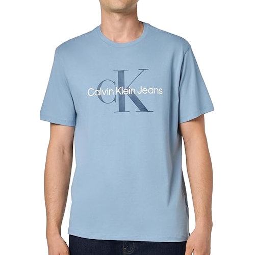 【Calvin Klein】2025男時尚CK標誌款淺藍色圓領短袖T恤