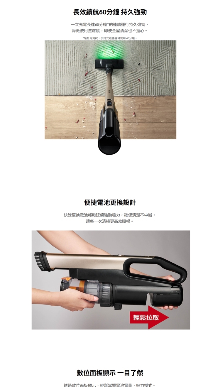 ◆ 長效續航60分鐘 手持強勁