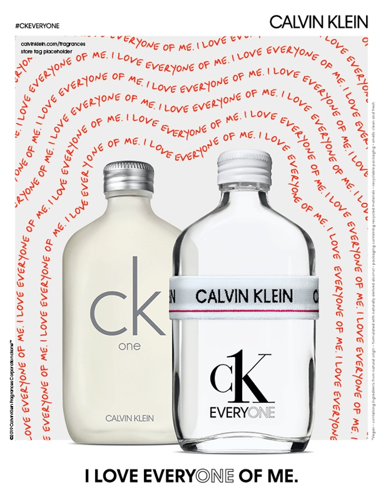CALVIN Klein推出首支主打環保意識的清新調中性淡香水CK EVERYONE,由首席調香師兼第一代CK ONE香水的創作者Alberto Morillas調配,CK EVERYONE由79%天然萃取成分調製而成,純淨、無性別之分的清新香氣,捨棄傳統的性別象徵;來自有機橙皮油的柑橘香氣,搭配藍茶香調與充滿活力的雪松木基調,融合成純淨跨性別的清新香氣,呼應了香水與廣告所傳達的一致性,不需墨守成規I LOVE EVERYONE OF ME-我愛每一個面向的我:Authentic-Inclusive-Liberated,真實-包容-解放。