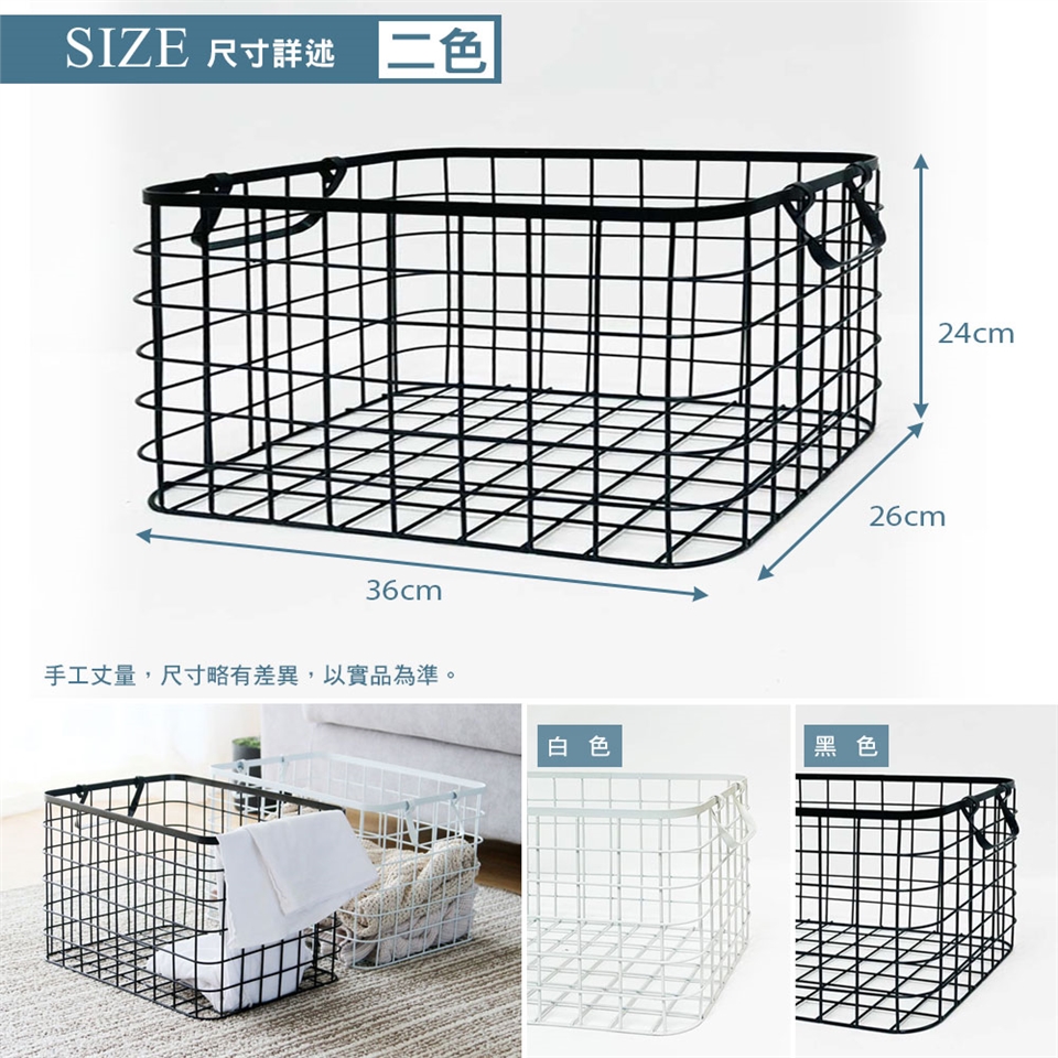 棉花田北歐風鐵線收納籃(36x26x24cm)