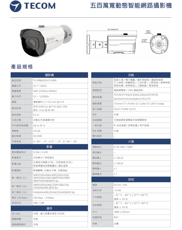 -支援Onvif,防護等級IP67。
