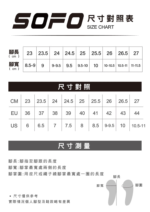 腳寬的部份是指腳掌最寬的部份,大約從大姆趾到小姆趾下方,取最寬的寬度