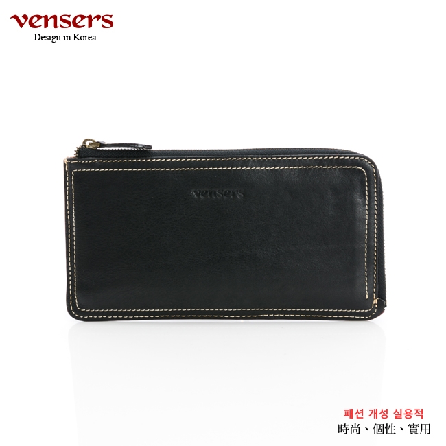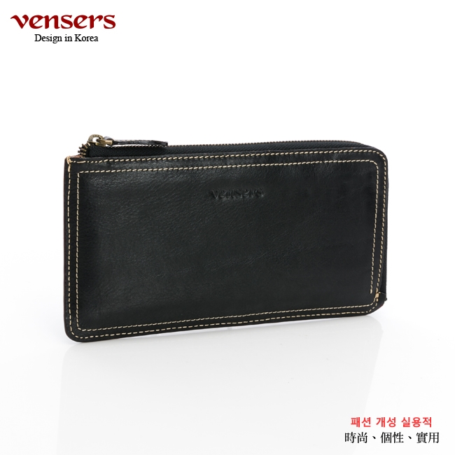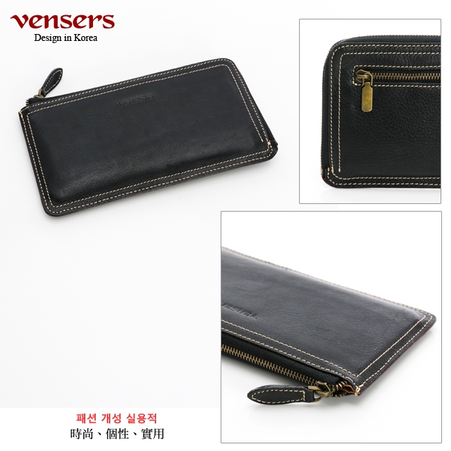 【vensers】牛皮潮流個性皮夾~(TJ821001黑色長夾)