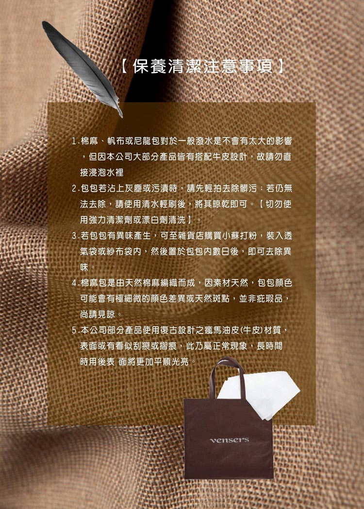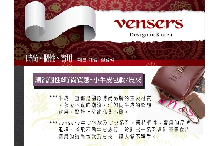 vensers牛皮包款/皮夾系列,秉持個性、實用的品牌風格,搭配不同牛皮皮質,設計出一系列各階層男女皆適用的時尚包款/皮夾,讓人愛不釋手。