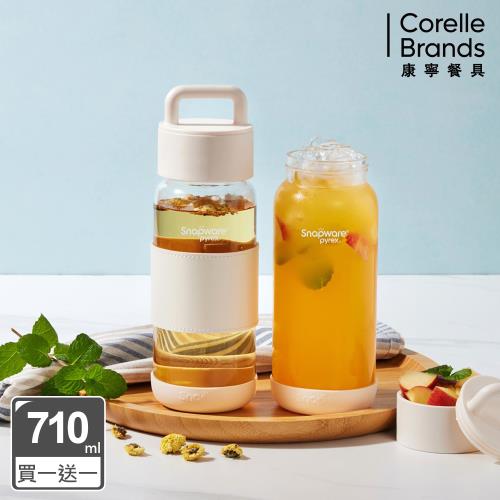 買一送一【美國康寧】Snapware 晶透隨身手提耐熱玻璃水瓶710ml-奶油白