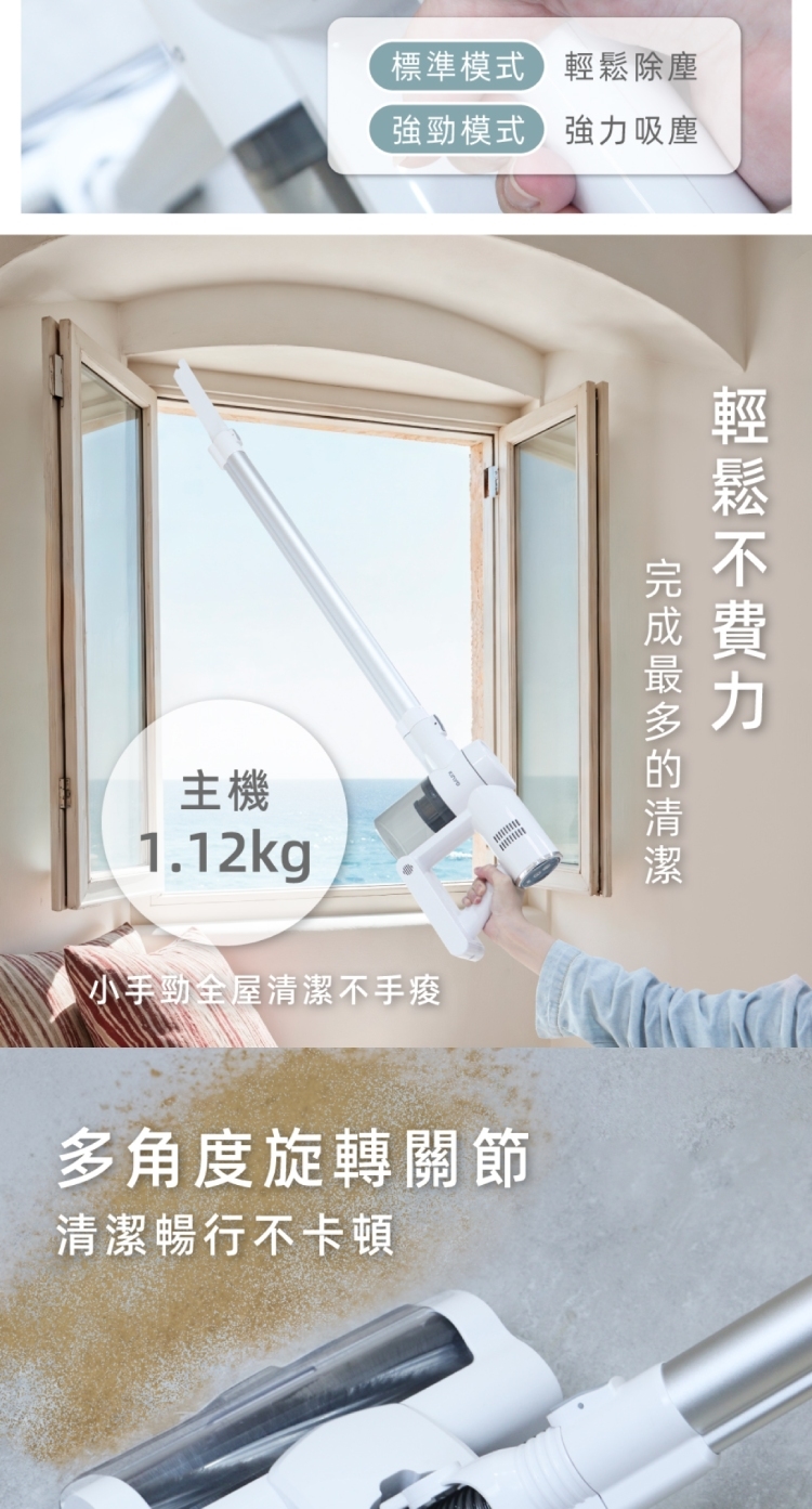 ★ 1.12kg超輕量,單手來回、高處清潔,小手勁也好上手