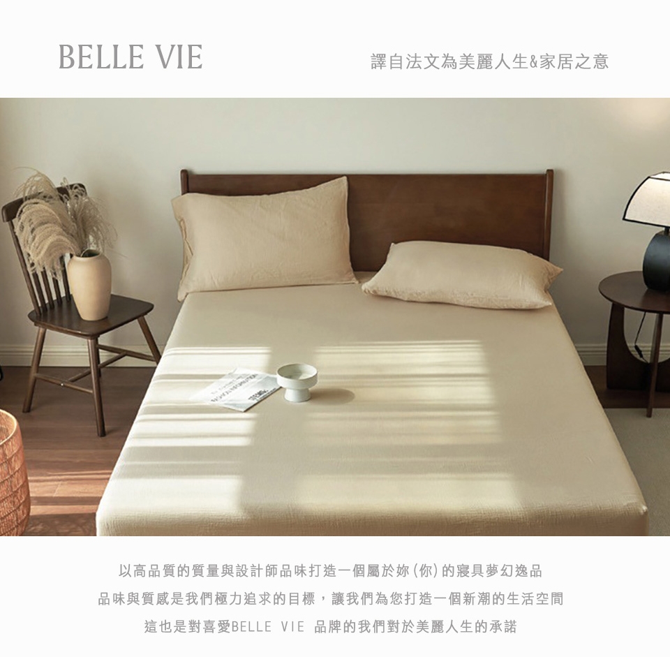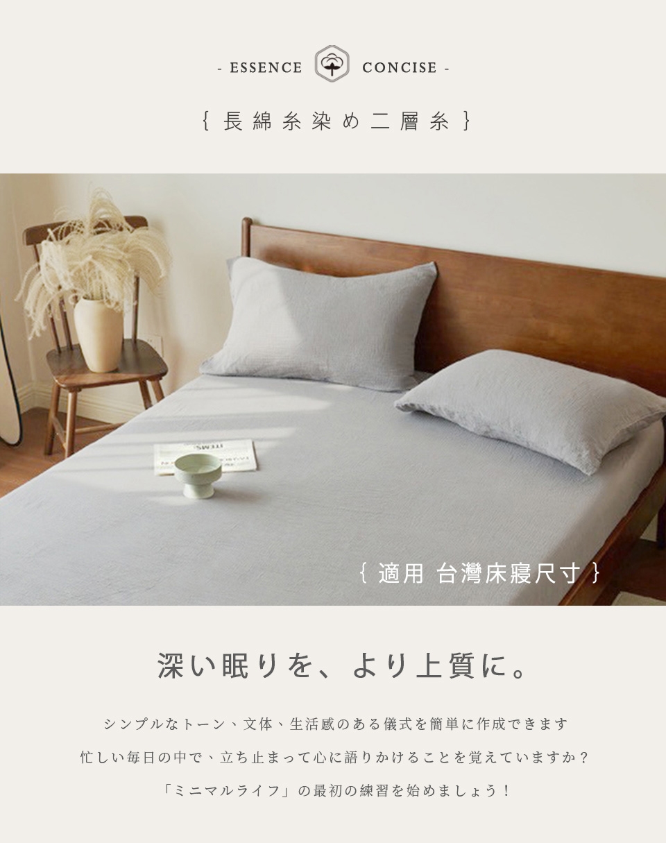 純棉二重紗 侘寂風 特大床包枕套三件組 (180x210cm) 床包加高35cm