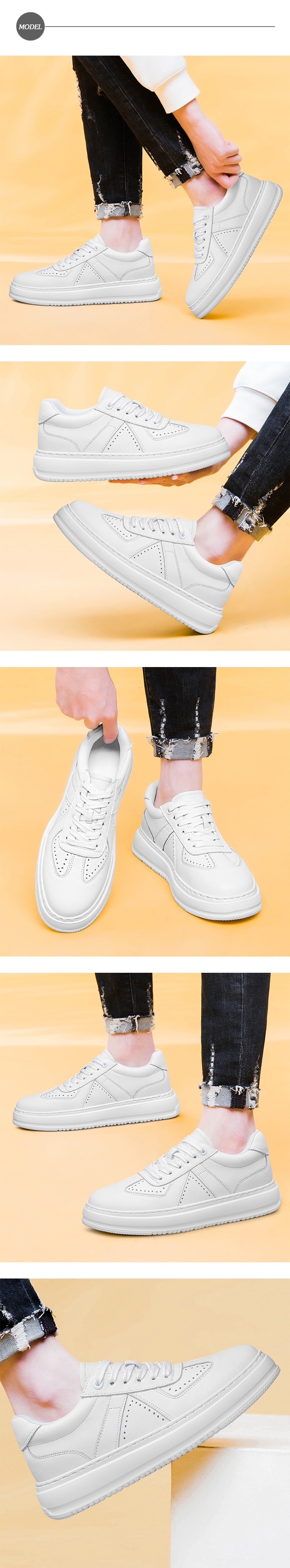 【Adonis】真皮雕花內增高休閒鞋/真皮個性復古雕花輕量厚底內增高休閒鞋 男鞋 白