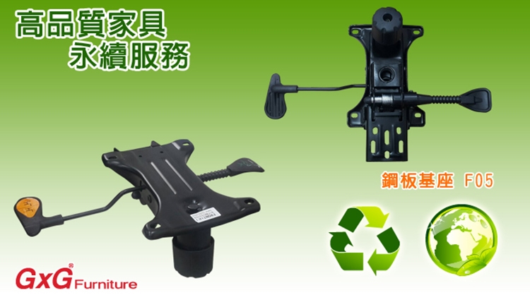 本款坐墊底盤使用F05分離式鋼板基座,可無段後躺固定,依自己喜好故定角度,或不固定隨時可彈力後躺,雙功能;懸臂機構在後躺時,座墊會同步傾斜,重心平穩,防止翻倒。
