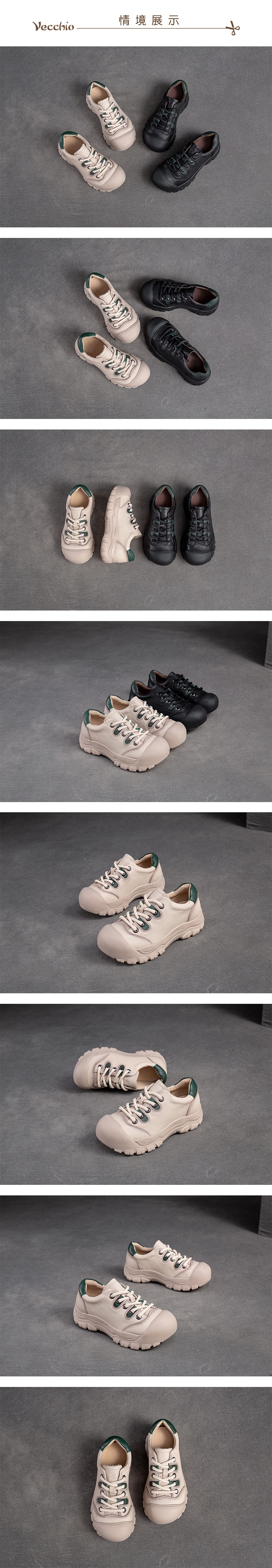【VECCHIO】全真皮大圓頭厚底運動鞋/全真皮頭層牛皮潮流大圓頭復古設計厚底運動鞋 女鞋 米