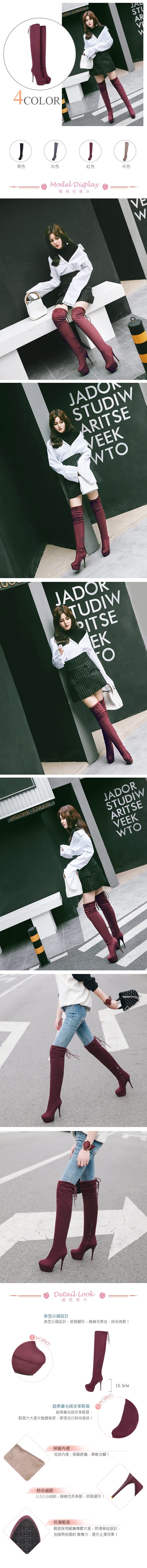 【KISSXXX】反絨純色過膝長靴/時尚經典反絨皮革純色後綁帶過膝騎士長靴 女鞋 紅