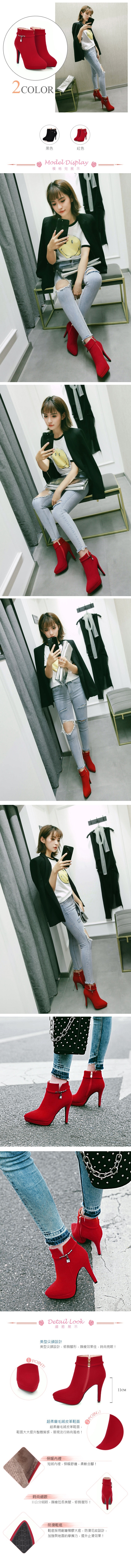 【KISSXXX】尖頭單鑽細跟短靴/時尚小尖頭簡約單鑽墜飾細高跟短靴 女鞋 紅