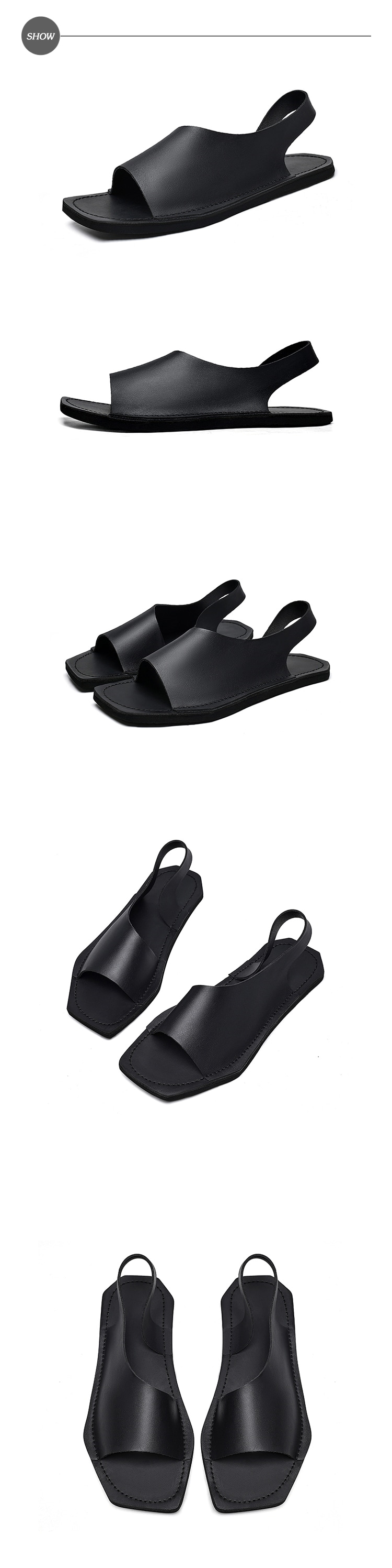 【KIRON】方頭露趾平底涼鞋/時尚幾何方頭平口露趾個性平底涼鞋 男鞋 黑