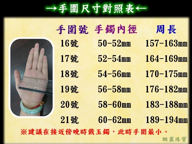 建議可在傍晚19-21時配戴玉鐲,此時手圍最小,可避免手受傷。